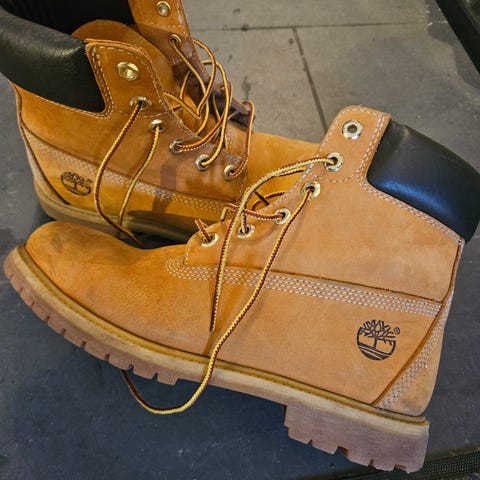 Veldig gode Timberland vintersko. Brukte sko, har ikke synlig slitasje på sålen. Sett bort fra noen flekker på frampartiet på skoen, ser de pene og greie ut. De må impregnert, og vil tro at disse flekkene vil gå bort. Gode og varme sko til kalde dager. Det står junior i skoen, men jeg finner ikke størrelsen. Vil tro det er rundt 40. 41