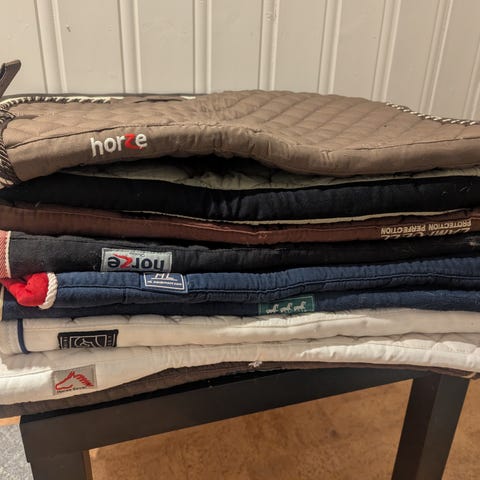 5 sjabaraker i ulike farger og materialer. Fra bl.a. John Whitaker, Equiline. Pent brukt, men kunne trengt en vask. Selges samlet for 600 kr.