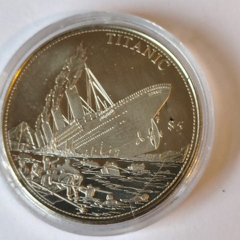 Saint Olav 5 Dollars mynt med motiv av Saint Olav og teksten 'KING OF NORWAY 1913-1930'. Mynten med fin detaljering og er utgitt som samleobjekt.