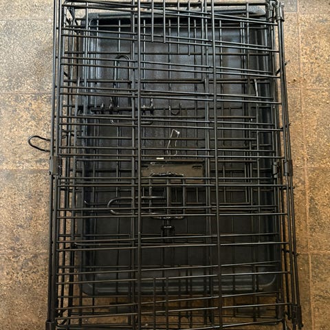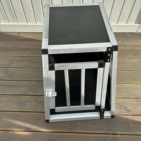 Hundebur i metall med bunnplate. Egnet for transport og oppbevaring av hunder.