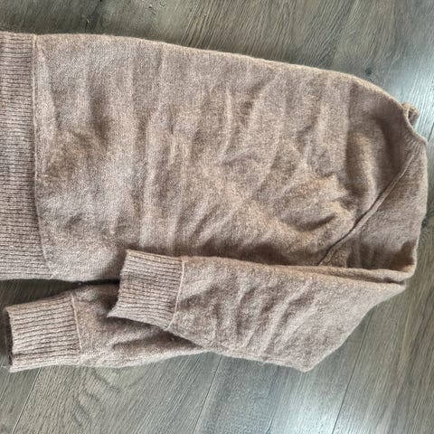 Brun genser med rosa mønster fra Culture. 60 % ull. Str M/L. Kr 350.