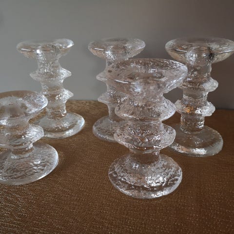 1.) Tre Festivo lysestaker - alle i flott stand. Den med tre knuter er ca 14,5cm høy, den med to knuter er ca 12cm høy, og den med en knute er ca 8cm høy. Den laveste er signert TS. Kan vurdere å selge stakene enkeltvis, men disse er flotte i gruppe og