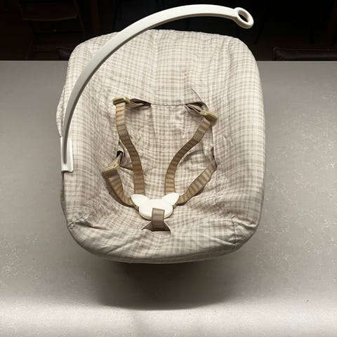 Stokke Babysete lys blå, pent brukt - ble gjort oppmerksom på at det mangler sideseler. Vi har brukt den uten.
