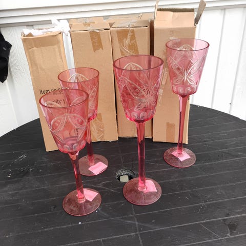 6 søte blå vinglass