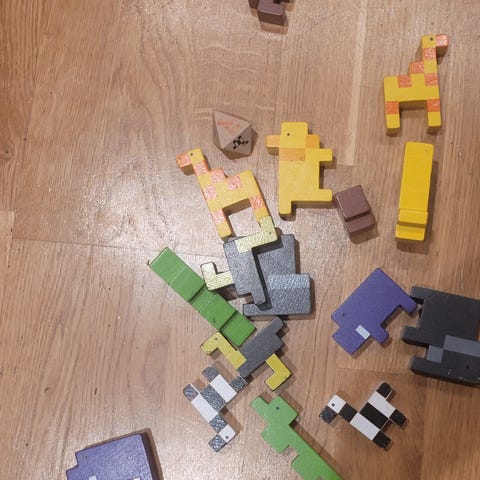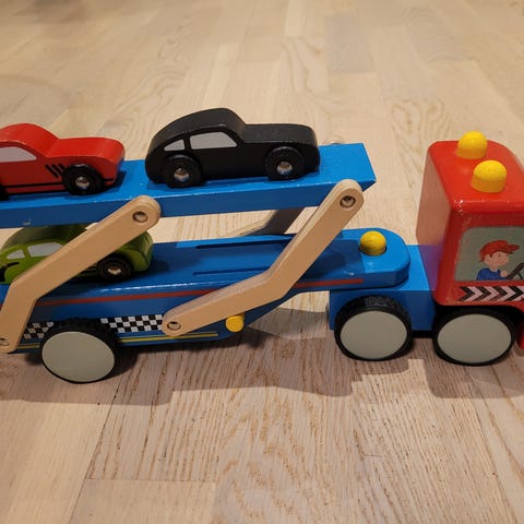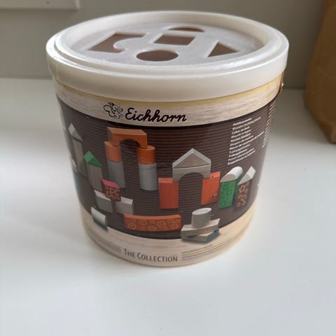 Muji treleketøy, består av flere små deler i tre, inkludert klosser og figurer. Passer for barn og kan brukes til lek og læring.