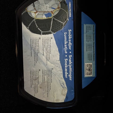 Selger 2 sett snøkjettinger fra Biltema. Begge er ubrukt og i god stand. Leveres i original koffert.
