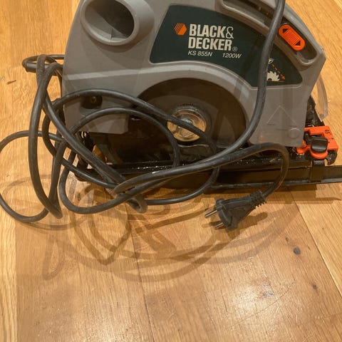 Black & Decker KS550 sirkelsag med effekt på 1100W. Sagbladets diameter er 165 mm. Produktet har 3,5m ledning for strømtilkobling.