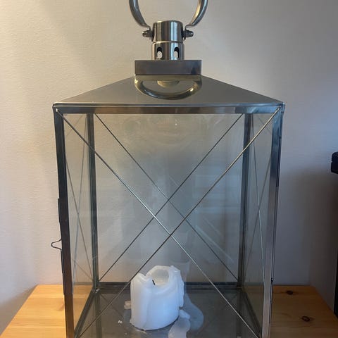 Høyde glasset er 45 cm,i tillegg kommer toppen med håndtak