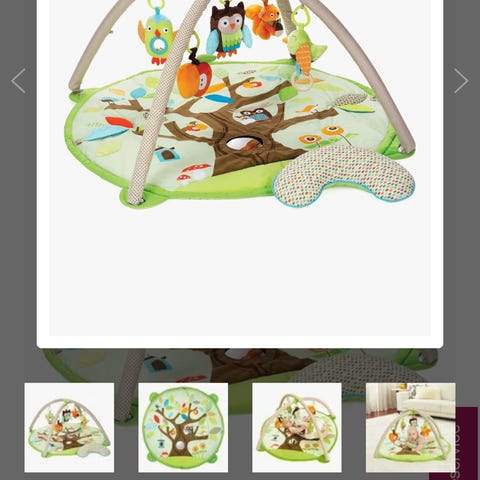 Selger en pent brukt Skip Hop Treetop Friends Classic Babygym med alle originale leker og kroker. Speilet har noen riper og fuglen synger ikke lenger, eller er lekene helt fine. Det er slitt i endene av den ene «stanga», se bilder.