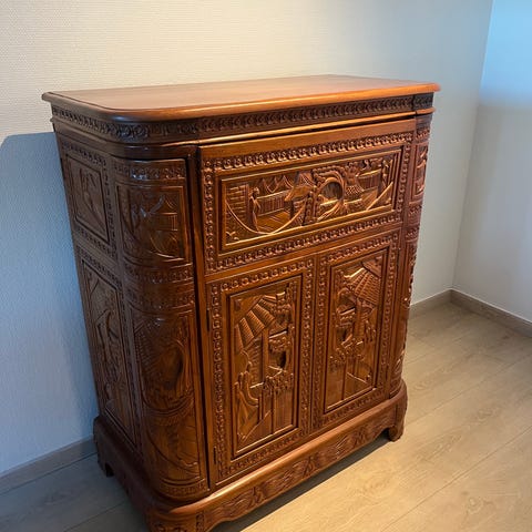 Pent brukt barskap med 2 sving dører og serveringsbrett