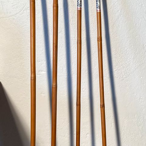 Et par skistaver med trinser av tre. Jern pigg. Ikke ofte man kommer over dette, bambus staver derimot er vanlige. Lengde 155 cm. Kan pakkes og sendes hvis ønskelig. Til info; Har to par ski også fra ca. år 1900.