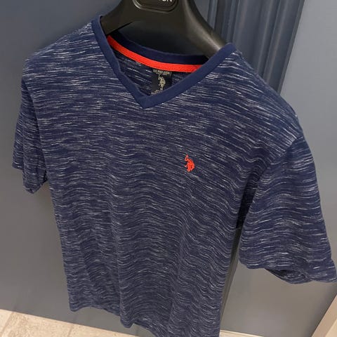 Ralph Lauren Polo T-skjorte i størrelse XL, svart farge, laget av bomull. T-skjorten har en V-hals og det karakteristiske Ralph Lauren-logoen i rød farge på brystet.