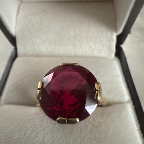 Anhengskjede for dame i gull. Smykket består av en tynn kjede i gull med et anheng som har en rød korall i midten, omkranset av en dekorativ innfatning. Kjedet lukkes med vanlig smykkelås. Passer som hverdags- eller tilbehørssmykke til ulike antrekk.