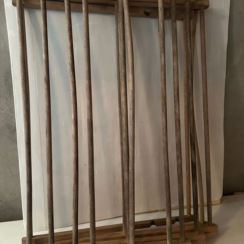 Trehvit. 3 stk sneller montert på stang i jern. Oppbevaringsrom i bunnpartiet. Kan pakkes og sendes hvis ønskelig. Høyde 43 cm. Bredde 40 cm. Dybde 14 cm.