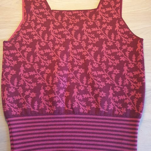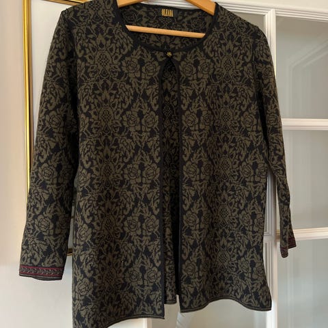 Denne nydelige toppen er svært lite brukt. Den består av en blanding av ull og silke. Ingen skader eller flekker. Har også jakke og pulsvanter (samme mønster) ✨️
