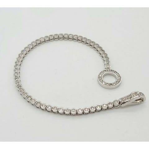 Armbånd i 14k hvitt gull med diamantdetaljer, designet for unisex bruk. Armbåndet har et mønster med innslag av diamanter og en lås for sikker festing. Stor diamant 22 stk