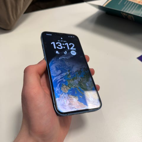 Det er noen få små riper på skjermen.Det er ett lite bruksmerke på rammen.Selger kun iPhone, uten lader eller ladekabel
