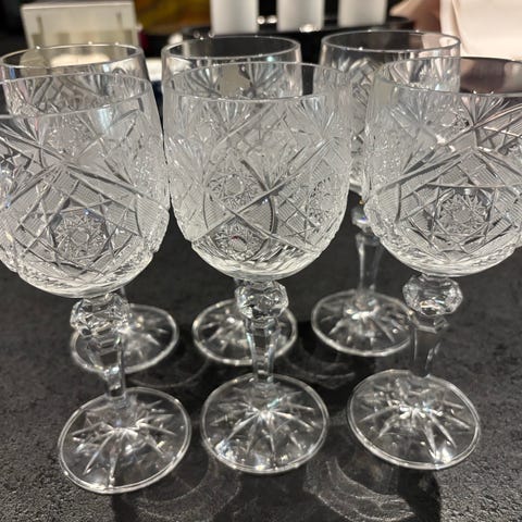 11 stk vintage polsk krystallglass med gullkant