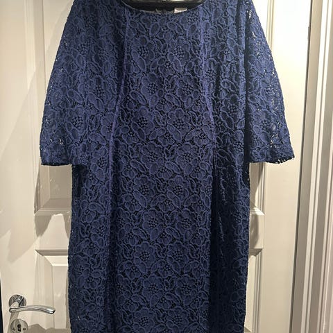 Nydelig Zara paljettkjole i mørkblå farge, størrelse L, . Laget av paljettmateriale/polyester som gir en glitrende overflate. Kjolen har V-hals og korte ermer. 100 cm fra lengde, så akkurat på kneet på meg, jeg er 175cm. God elastiske materiale.