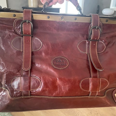 Weekendbaggen er kjøpt for en del år siden for kr 2.000 på Morris. Er dessverre ikke blitt brukt mer enn et par ganger. Sort, mykt skinn. Glidelåslomme utenpå og inni.