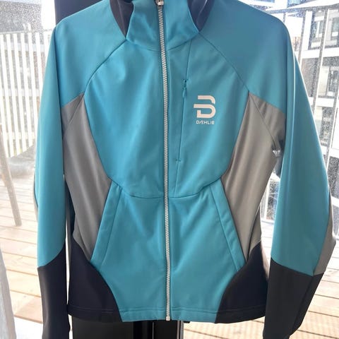 Dæhlie unisex skijakke i størrelse XS. Jakken har blå og grå farger og er designet for fottur./skitur. Materialet og designet er tilpasset utendørs bruk.