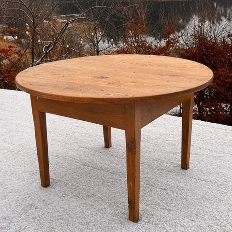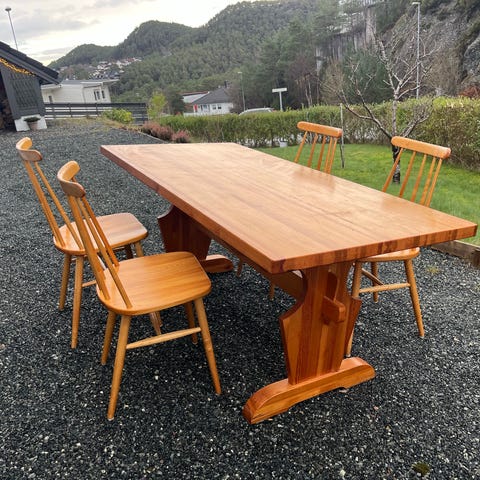 Fire gode trebord, brukt i barnehage. To av bordene har en lengde på 170 cm, to er 2 m lang.