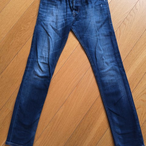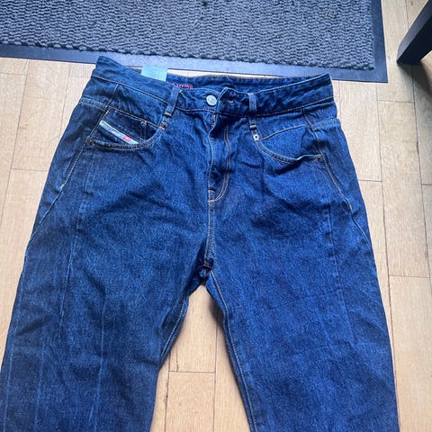 Diesel Tepphar jeans i blå denim for menn. Størrelse S med midjemål W28. Designet i klassisk jeansstil med lommer foran og bak.