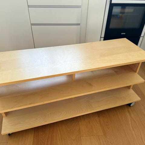 Fin tv sjenk. En skade etter skrue, som anvist på bilde. Må hentes, avt. Behjelpelig med frakt i Trondheimsområdet.