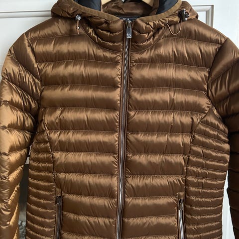 Godt brukt jakke (av min mor). Oppleves noe liten i str. Flasser på skinnet, som nok kan fjernes om ønskelig. Ikke synlig når jakken er lukket. Ellers i god stand.