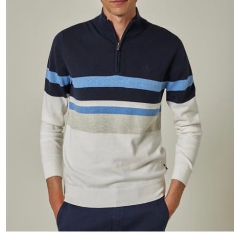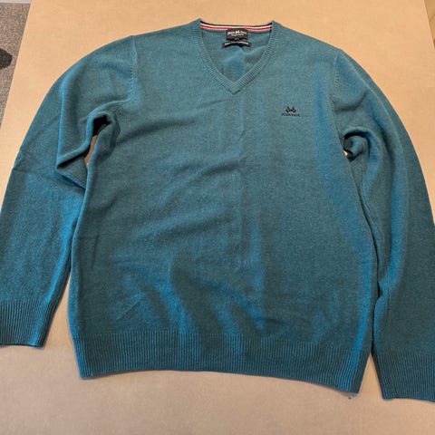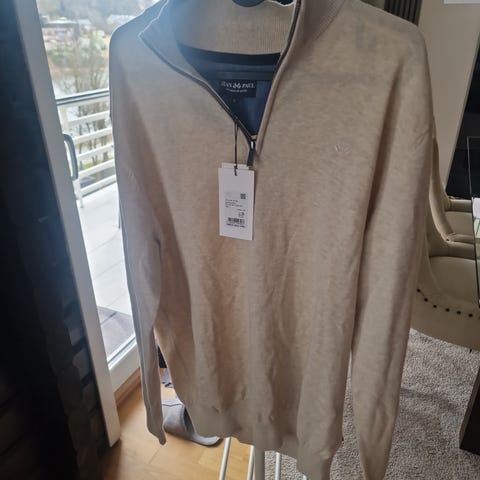 Jean Paul Lucien Zip-Neck genser i størrelse L for menn. Genseren er grå og laget av 60% bomull og 30% nylon, med 10% ull. Den har en zip-neck design og er laget for komfort og daglig bruk.
