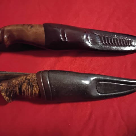 Forskjellige kniver selges billig. Helst vil selge begge to ammen men kan selges separat også. Overst er made in Norway nederst jeg funnet ingen merke på denne. Pris for begge to stk 900 .pris per stk 500kr