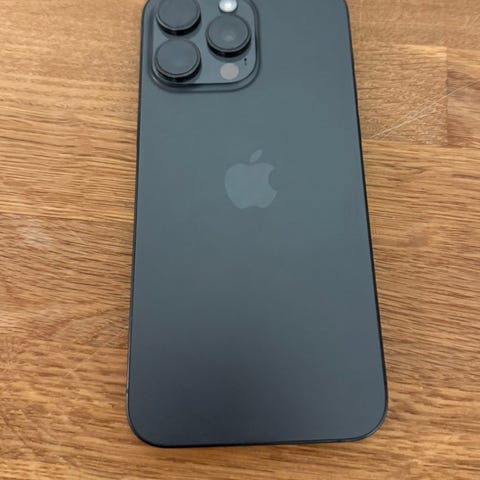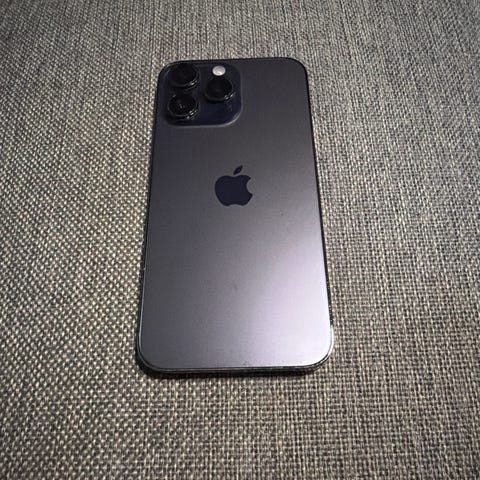 Apple iPhone 15 Pro mobiltelefon med 128 GB lagringskapasitet. Enheten har normal batteritilstand med 87 % maksimal kapasitet og 555 fulladingssykluser.