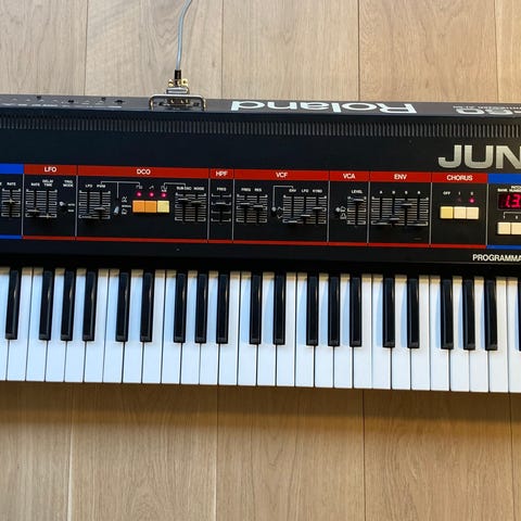 Roland SH-2 analog monosynth fra 1979. Veldig god stand til tross for alderen. Har noen små riper et par steder, men et ganske fint eksemplar. 230V. Støvbeskytter følger med (se bilde). Kan prøves og hentes i Stavanger. (Ser helst at denne hentes, men kan evt. diskutere å sende den).