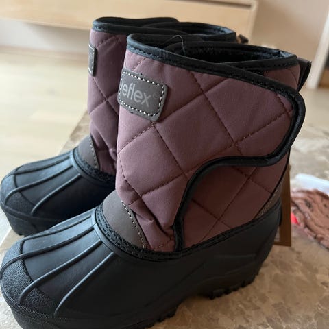 Reflex Regnsko med fleece inni unisex i størrelse 25. Skoene er svarte og designer for å gi varme og beskyttelse i kalde værforhold.