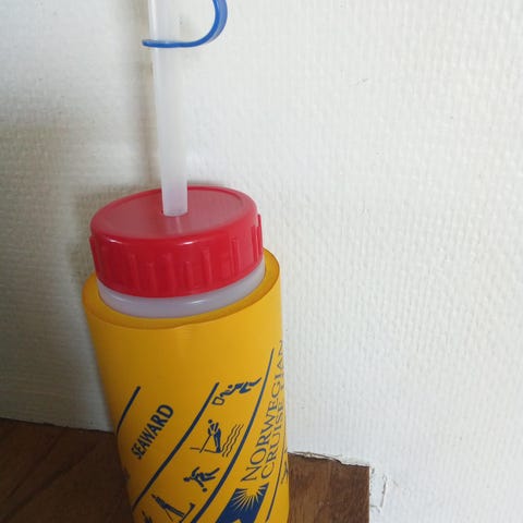 Treeske i eik utgitt i forbindelse med 2008 Adventure XO Cognac, MV Fram. Glassflasken er tom. - polar - Grønland - Hurtigruta