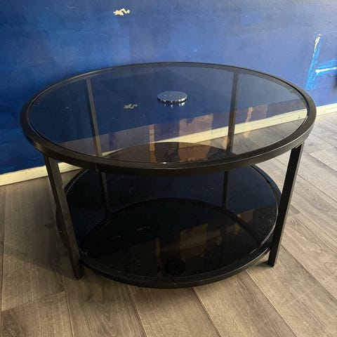 To bordplater og en bunnhylle for praktisk oppbevaring