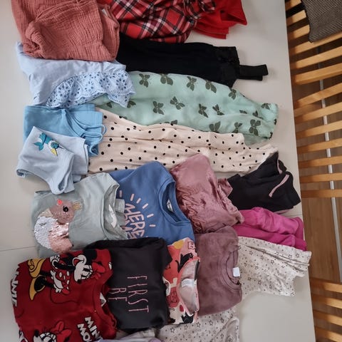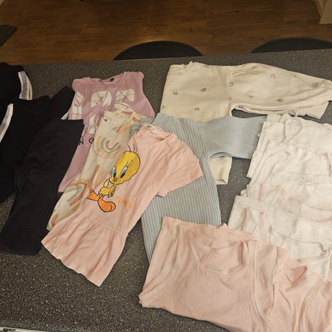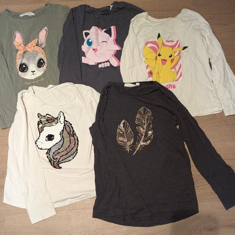 3 av tightsene har litt slitasje på kne/ små hull- se bilde. Litt nupper på 'regnbuegenseren'.
