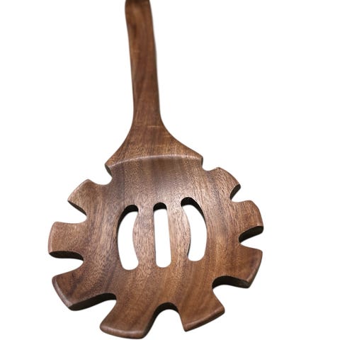 Dette er en pastaskje i tre som er designet for allsidig bruk – perfekt til servering av spaghetti, nudler og andre retter.
