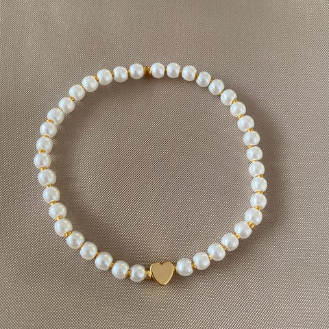 Dobbelt Rosa Perlekjede med hjertelås fra Van Bergen i gull / hvitt gull selges.