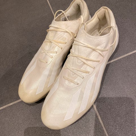 Brukt på 3 kamper, og har noen små merker men det er bare på grunn av turf. Nettopp vakset (forsiktig) og er som helt nye nesten.