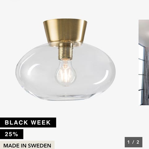 MADELENE Plafond Madelene plafond kombinerer metall med vakre akrylprismer som gir et elegant og luksuriøst uttrykk. Lampen sprer lyset fint og skaper en stemningsfull atmosfære i rommet. Den lave høyden gjør den ideell for korridorer og små rom, men den passer også godt i soverom og stuer.