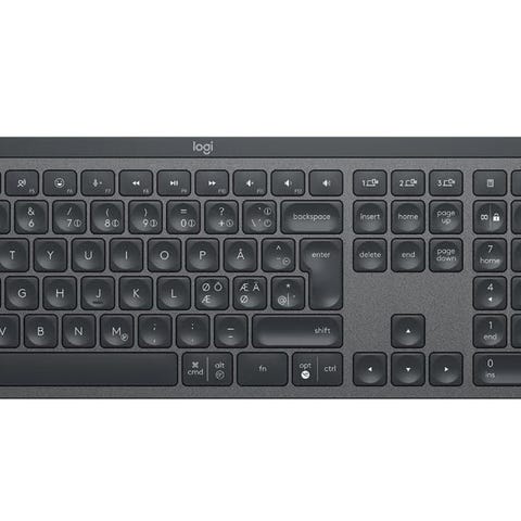 Logitech MX Keys Combo tilleggsutstyr bestående av et tastatur. Tastaturet har et komplett oppsett med numerisk del og er designet for komfortabel og effektiv bruk..