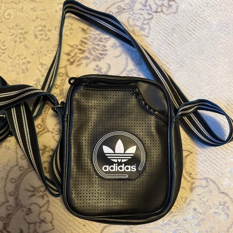 Adidas sidebagg. Sidebaggen har justerbar stropp med Adidas-logo og flere rom med glidelås for oppbevaring.