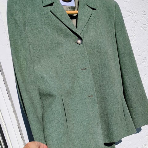 Pent brukt damedrakt,skjørt brunfarget,jakke brun/rød.livvidde ca ø 76-80 cm