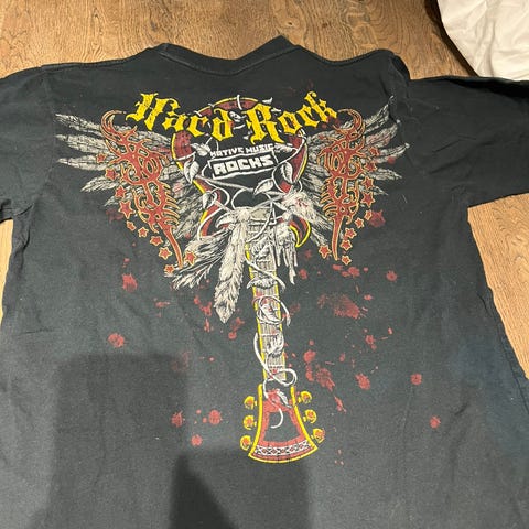 Svart med grafisk trykk av Nas på 90-tallet, både foran og bak.