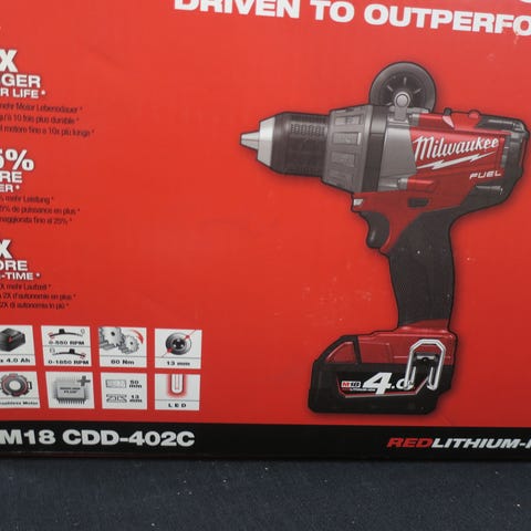 Ny Milwaukee M18 BLPD2-0X batteridrill med børsteløs motor og REDLITHIUM-ION batteriteknologi. Produktet kommer med 2 stk 5 Ah batteri og lader.
