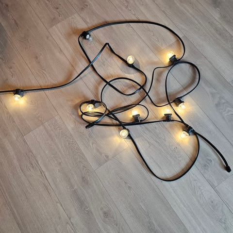 Selger 3 pakker med batteridrevet lyslenke med "istapper" i ulike lengder. Disse ble kjøpt til advent 2025, og har hengt ute i 10 dager. Selges da vi istedet gikk for en annen løsning på utendørsbelysningen.