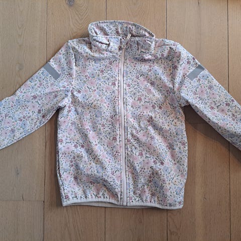 KappAhl jakke i størrelse 110 for jente. Jakken er flerfarget med blomstermønster og laget av polyester. Passer til barn og har hette. Materialet består av 100% polyester både i ytterstoff og fôr.