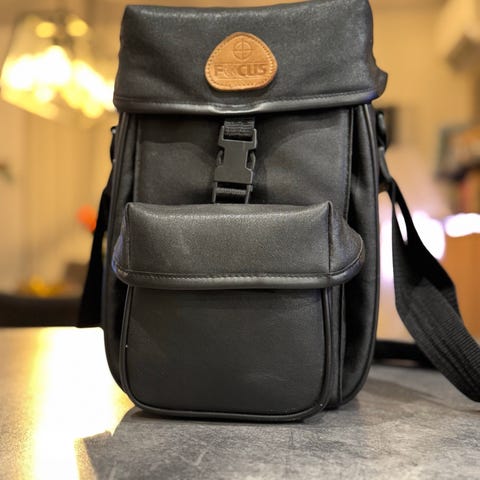 Proline skulderveske i svart materiale med brune detaljer. Vesken har to spenner foran, justerbar skulderrem, og flere rom for oppbevaring. Passer til daglig bruk og oppbevaring av personlige eiendeler.