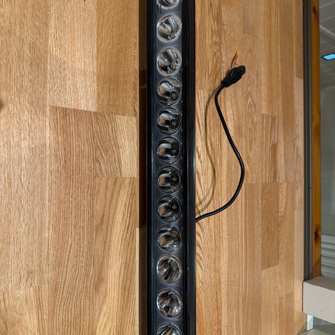 Har vert montert på Peugeot ekspert, men kan monteres på andre biler også. Diameter på Luminator Led er 22 cm som gir jevn og ideell belysning av veibanen. Selges komplett for 9000 kr